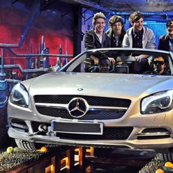 One Direction con El Hombre de NegroLiam Payne, Louis Tomlinson, Niall Horan, Harry Styles y Zayn Malik montados en un coche con El Hombre de Negro durante la visita de One Direction a 'El Hormiguero'.