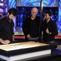 Emilio Estevez y Martin Sheen con MarronEl científico de 'El hormiguero' explica a los actores su experimento.