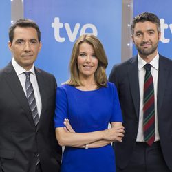 Nuevo plató del 'Telediario' de TVENuevo decorado de los informativos de Televisión Española, desde el 18 marzo de 2014.El equipo de deportes de los informativos de TVESergio Sauca, Jesús Álvarez, Maria Escario y Roi Groba forman el equipo de deportes de los informativos de TVE. Jesús Amor, Ana Belén Roy y Roi Groba, presentadores del 'Telediario matinal'Jesús Amor, Ana Belén Roy y Roi Groba están al frente de la nueva etapa del 'Telediario matinal'.El nuevo equipo de los informativos de TVEEl director de TVE, Ignacio Corrales, y el de los Servicios Informativos, Julio Somoano, junto a los presentadores de esta nueva etapa televisiva. Jacob Petrus, presentador de 'El Tiempo' de 'Telediario Matinal'El geógrafo, conocido por ser el 'hombre del tiempo' de Telemadrid desde 2004, se incorpora a TVE para conducir 'El Tiempo' del espacio informativo.