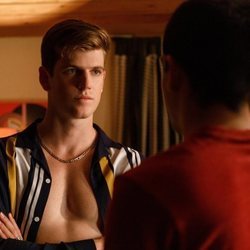 Manu Ríos y Arón Piper sin camiseta en una fiesta en 'Élite 4'Durante una de las fiestas de la cuarta temporada de 'Élite', Patrick y Ander (Manu Ríos y Arón Piper) se miran desafiantes.