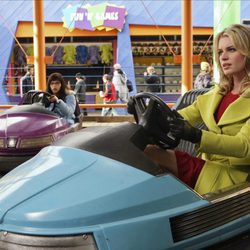 Eric Mabius y Becki Newton en un coche de choqueEric Mabius y Becki Newton en un coche de choque en el capítulo "Hermanos" de la serie 'Ugly Betty'.