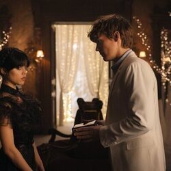 Fred Armisen y Jenna Ortega en Capítulo 4 titulado 'Si las tristezas hablaran' de 'Miércoles'Fred Armisen y Jenna Ortega aparecen en una escena promocional del capítulo 'Si las tristezas hablaran' de la serie 'Miércoles'.