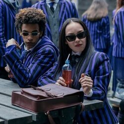 Georgie Farmer y Joy Sunday en 1x08 titulado 'Una bandada de tristeza' de 'Miércoles'