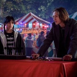 Jamie McShane y Jenna Ortega en 'Más vale diablo triste que conocido' de 'Wednesday'Jenna Ortega y Jamie McShane aparecen en una imagen promocional del capítulo 2x02 de la serie 'Wednesday', la serie de televisión de Netflix.