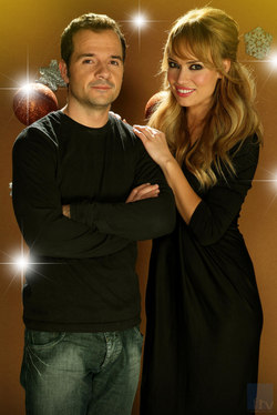 Ángel y Patricia en Navidad en el plató de SLQH.