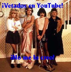 Y es que entiendo que veten otro de los videoclips de Queen, el de Bicycle Race, ya que en él salen mujeres desnudan montando en bicicleta (pero no es un vídeo porno ni nada, las mujeres que aparecen son tanto asiáticas como europeas, pasando por todas las razas, y de todos los tamaños, vamos, que alaba la belleza femenina evitando los tópicos), pero es que en ese vídeo no hay nada que pueda dañar la sensibilidad de nadie. Ya puse aquí I Want To Break Free y creo que pudisteis comprobar que no erro. Ni violencia, ni malos ejemplos, ni escenas ofensivas o sexuales. Nada. Lo único que veo es que el tío de YouTube que lo ha prohibido es sumamente tonto. ¿Por que salgan vestidos de mujer (para hacer una parodia de una serie británica conocida por su falta de gracia) ya corrompe a los menores?