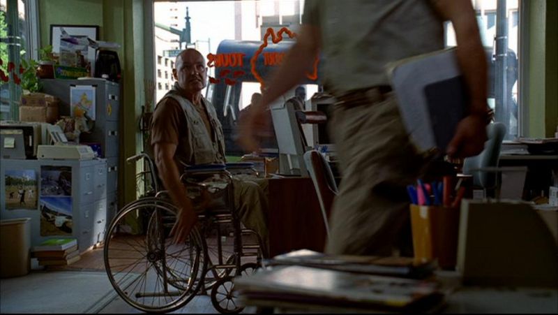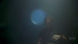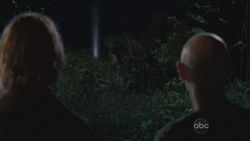 Locke llorando por la muerte de Boone, a la vez que le salva la vida a Desmond, se da cuenta que no están solos.
