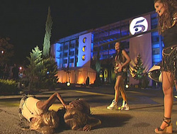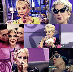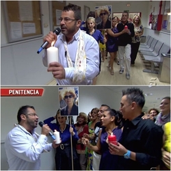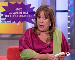 Karmele con mantilla y una pancarta de la duquesa para pedirle perdón xD