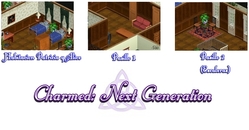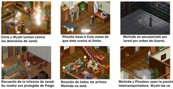 Todos los protagonistas Halliwell y la nueva mansión en el fondo.