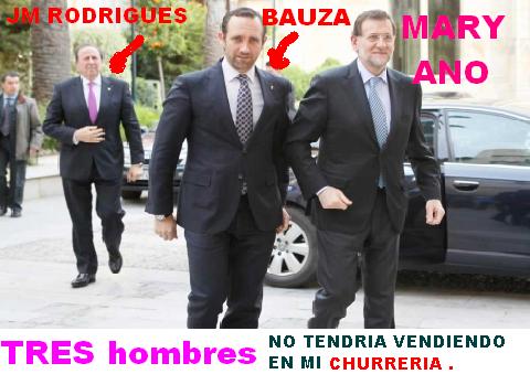 BAUZA paga cada mes 10000€ de IPOTECA,JOSE M RODRIGUES un ciudadano ejemplar antes de ver el chollo de la POLITICA debia en MULTAS mas de pelas ya me diran ahora es el DELEGADO DEL PPflauta Y MANDA A LA POLICIA PERO LA GUADIA CIVIL lo tiene medi pillado ,el MUNDO al REVES espero en las prochimas eleciones les den una patada en el CULO.