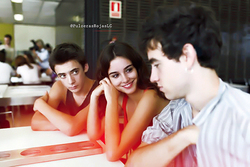 Joana vilapuig , cristina, y alex monner, lleo, pulseras rojas, polseres vermelles. beso