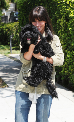 Jennifer Love Hewitt posa con un perro, uno de sus animales predilectos. La imagen fue tomada el 27 de julio de 2010.