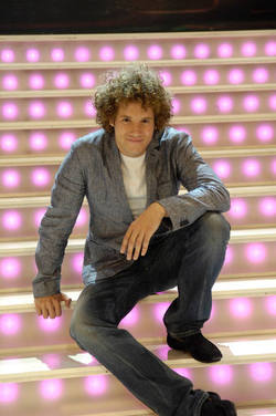 Dani posando en las escaleras del plató de Cántame en los Estudios Buñuel.
