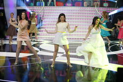 Las 13 aspirantes a Mercedes en las escaleras del plató