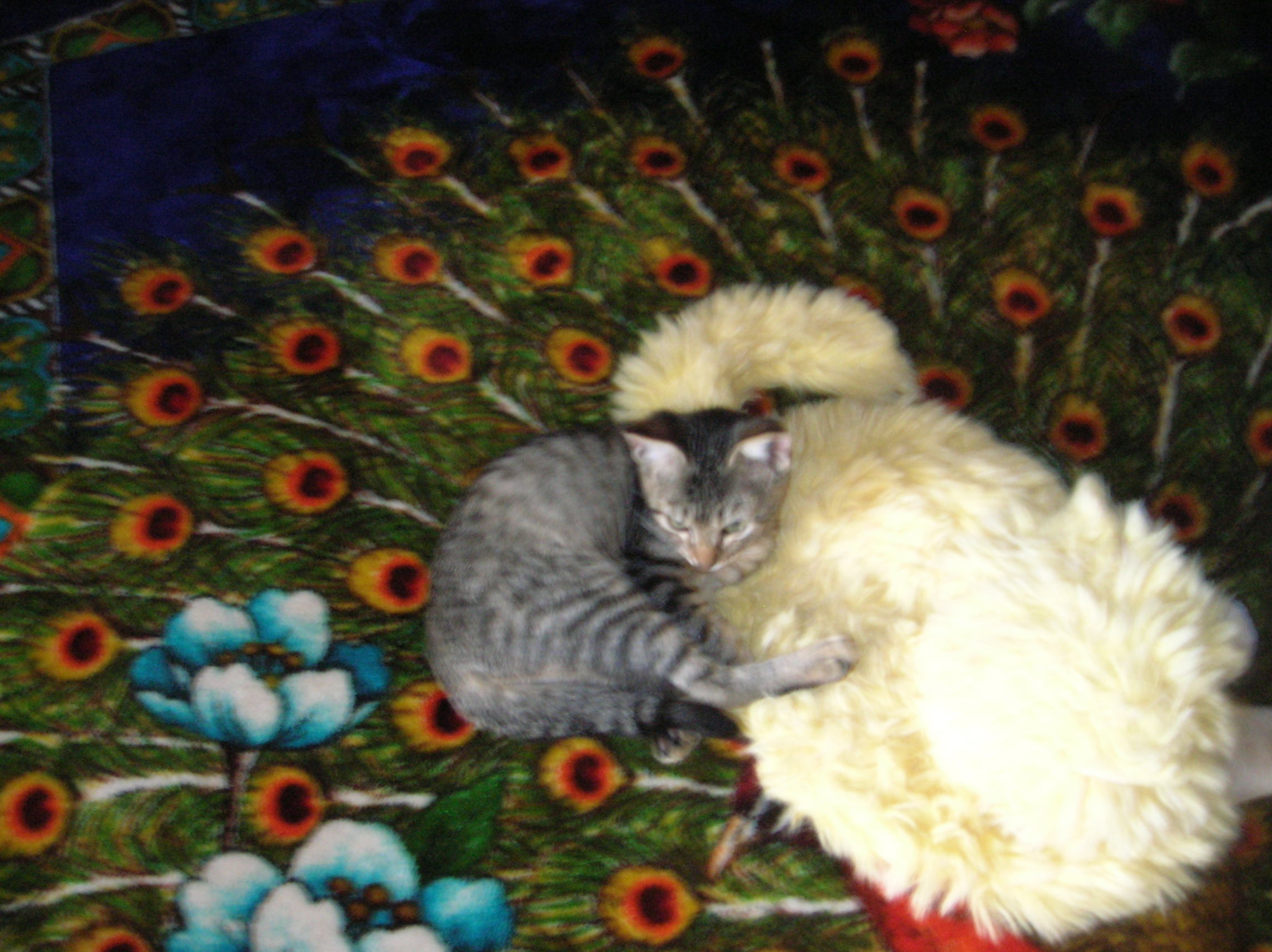 Muy xul esta encima de un muxo es su favorito aora se aburre porque no encuntra el peluche xD..
