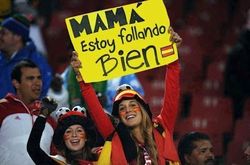 uy, uy, estas aficionadas de la Roja están desatando la furia española en Polonia y se lo cuentan a sus madres a través de un cartel!