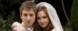 Los protagonistas de 'Doctor Who' Arthur Darvill y Karen Gillan (Rory y Amy) posan en una foto en el dia de su boda
