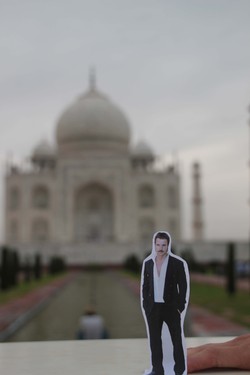 Que conste que la idea me la dio Mimi con su mini Carles recortado sobre su mesa... no me pude resistir y me lo lleve de viaje conmigo! jajajaja