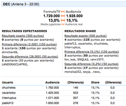 Share exacto en DEC, 15,1% 2ª del año y 125 puntitos.