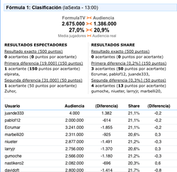1º en audiencia en el hormiguero solo a 4000 personas genial primeros 150 puntos para septiembre