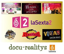Muy entretenida la programación de las tardes en laSexta2. El pasado 2011 y este principio de 2012, con docu-realitys muy amenos que me aportan mucho. Una forma de hacer televisión, en mi opinión, de mucha calidad, pero que no cuenta con el apoyo mayoritario de la gran masa de público, que prefiere "otras ofertas" en una época televisiva, esta...., donde triunfan los formatos de "otro tipo" que prefiero no calificar. Me quedo con este tipo de TV, de muy buen gusto.