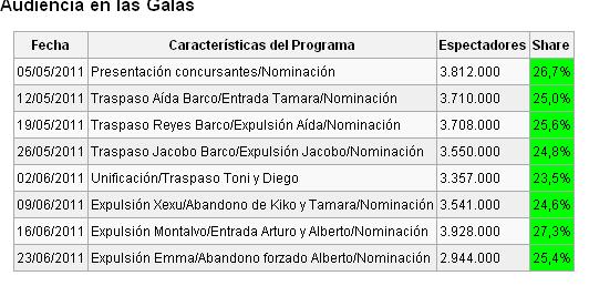 En verde, es que ha liderado en prime time
