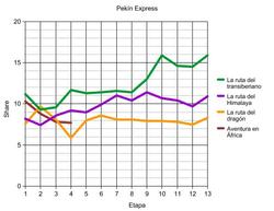 Gráfico que detalla las audiencias de Pekín Express y nos ayuda a comparar las ediciones
