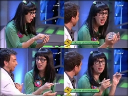 La desconocida Flipa (cuyo hermano Flipy tuvo ayer un "accidente" en el programa relacionado con sus líquidos...) en El Hormiguero.