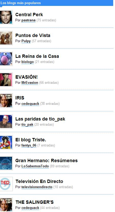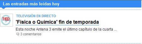 Sin duda estamos en la semana de máximos de el blog "Televisión En Directo" hemos colado 2 entradas más en las más leidas, hemos llegado al 4 puesto de popularidad, hemos recibido muchas visitas a nuestras 3 entrevistas que llevamos por ahora, ha sido la primera vez que nos ponen en la principal de Formula tv y además ayer record de visitas a nuestro perfil.