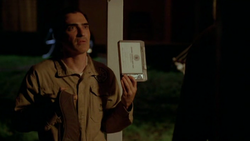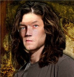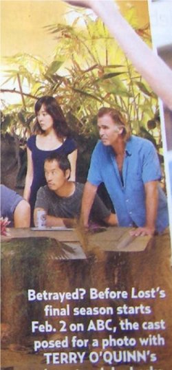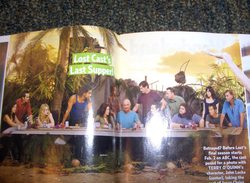 Detalle de una foto aparecida con el cast de Perdidos de la sexta temporada "posando" como en "La Ultima Cena" de Leonardo Da Vinci. En este detalle se aprecia que Lapidus NO posa, es un fotomontaje. No tiene piernas (las han sustituido por un tronco de palmera) y la mesa en la que se apoya no es la misma.