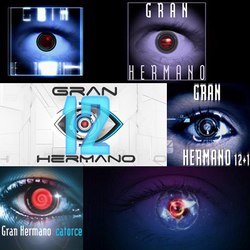 ABAJO (Izquierda) GH recupera en cierta medida la idea del logo original de Gran Hermano, predomina el ojos en tonos azules y la cámara remarcada en negro y rojo en cuyo interior sale un espiral en representación del "vértigo" de la edición. Es el logo que vimos en 'GH Catorce'. (Derecha) El nuevo y recién estrenado logo. GH se plantea el renovarse y empieza nuevamente por el logo. Un logo sencillo que se centra en tonos morados y negros, resaltando el objetivo rojo de la pupila del ojo y rodeado de una especie de constelación con el nombre de concursantes participantes a su alrededor y un cierto brillo que recuerda la forma de un diamante. Es el logo de 'GH 15'