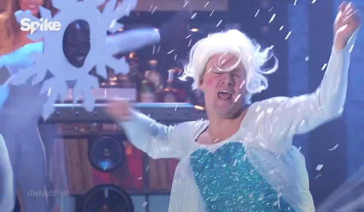 El actor se enfundó el vestido azul y la trenza de la protagonista de "Frozen" para sorprender sobre el escenario de Lip Sync Battle.