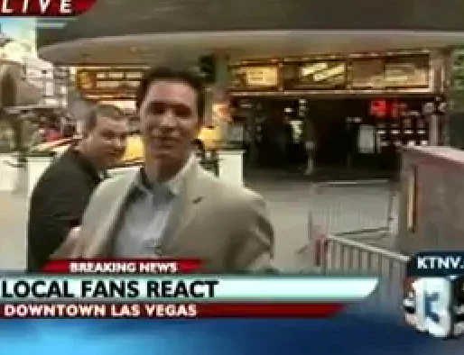 Ocurrió en una conexión en directo con Las Vegas, cuando un fan con unas copas de más se coló en una conexión en directo en ABC e hizo perder los nervios al reportero.