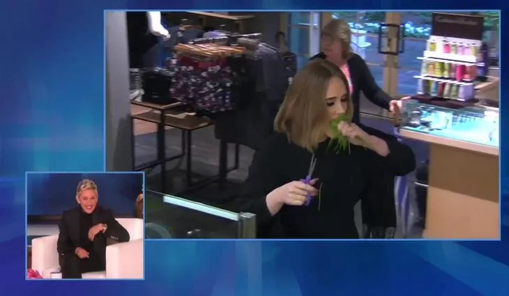 Adele come hierba en la divertida broma de pinganillo que realiza en 'The Ellen DeGeneres Show'