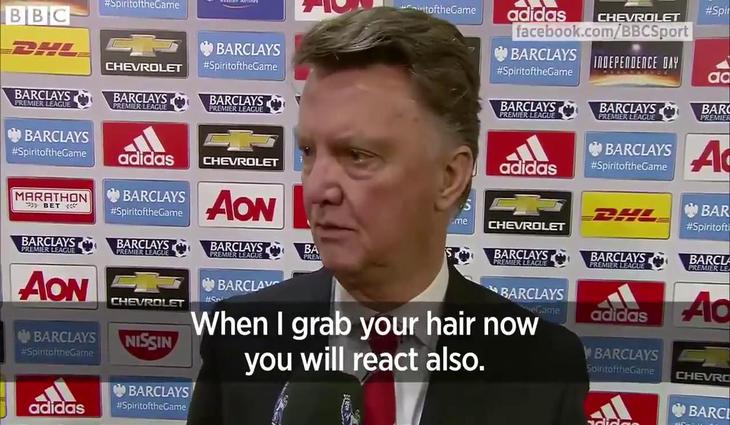 El técnico del Manchester United argumentó de una forma un tanto extraña una acción una acción entre Fellaini y Fuchs. "Si yo a ti te tirase del pelo, también reaccionarías. No está escrito en la reglas que se pueda tirar del pelo. Eso solo se hace en el sexo sadomasoquista. Ahí está permitido".