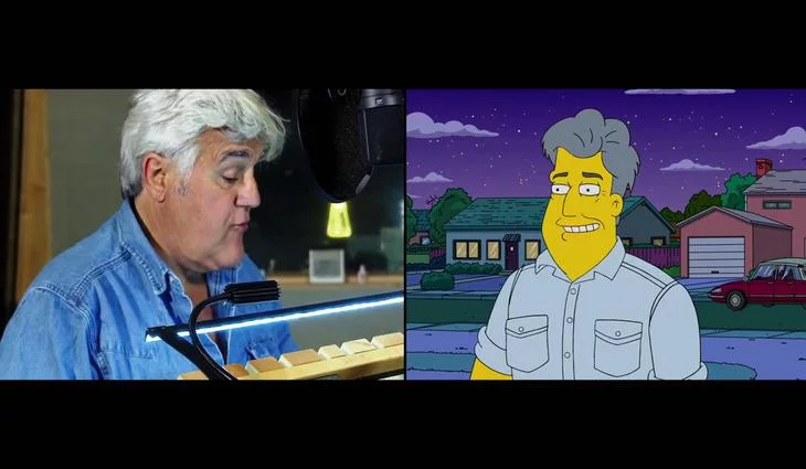 El presentador y humorista Jay Leno, gran amante de los coches, realiza este domingo un cameo en 'Los Simpson'.