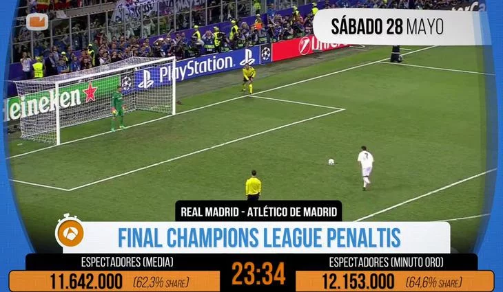 La final de la Champions registró el pasado sábado el "minuto de oro" de la temporada con 12,1 millones