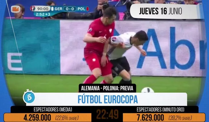 Telecinco deja sin opciones a sus rivales y logra todos los Minutos de Oro de la semana gracias a la Eurocopa