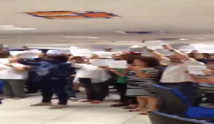 Los trabajadores de la cadena pública se han manifestado silenciosamente frente a la mesa de edición del informativo.