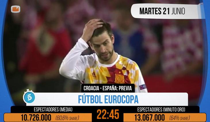 La cadena de Mediaset vuelve a hacerse con todos los "Minutos de Oro" de la Semana 25. La Eurocopa le reporta 5 victorias, otra la suma 'Supervivientes' y otra 'Sálvame deluxe'.