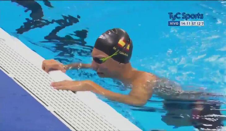 El nadador Miguel Durán salió en falso y al darse cuenta de su error rompe a llorar en la piscina. El público se volcó en aplausos para el español de 20 años que finalmente fue readmitido.