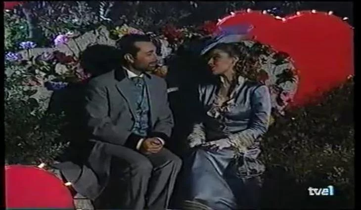 Terelu Campos, José Manuel Parada, Concha Galán, Luis Fernando Alvés y Jose Toledo vestidos de época y cantando "El día de los enamorados" en 'Telepasión'.