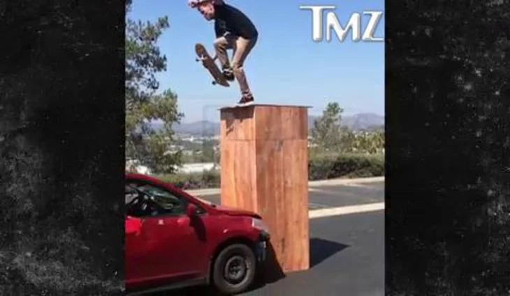 El actor y cómico intentaba aterrizar sobre su monopatín de pie al caer desde una caja siendo embestido por un coche. Desgraciadamente, el resultado no fue el esperado.