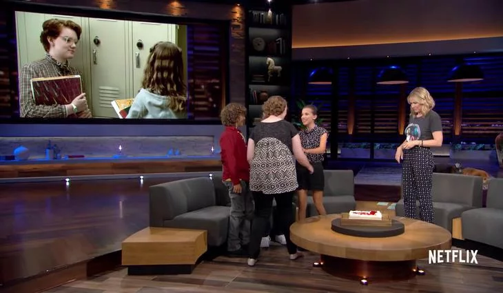 Shannon Purser lleva una tarta a Gaten Matarazzo (Dustin), se reencuentra con los actores y recuerda su paso por la serie.