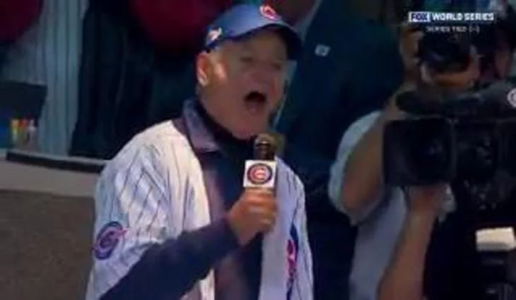 El actor recuerda al icónico personaje televisivo en el campeonato de la Liga Nacional en Chicago con la canción "Take me out to the ball".