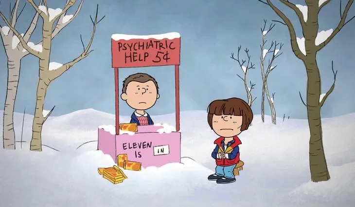Dustin, Lucas o Eleven llegan dibujados al más puro estilo de la tira cómica 'Peanuts' con Will Byers sufriendo una crisis existencial.