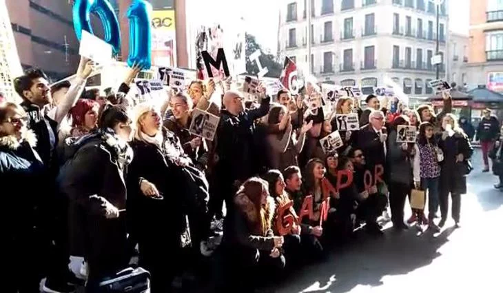 Un grupo de personas colapsa la Plaza de Callao para pedir el voto por el concursante gallego.