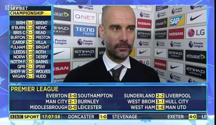 El entrenador del Manchester City mantuvo una tensa conversación con el reportero Damian Johnson durante entrevista emitida en BBC Sport.