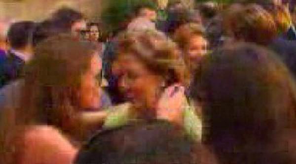 Las chicas de 'Salvados' obsequian al president de la Generalitat, Francisco Camps, y a la alcaldesa de Valencia, Rita Barberá, con la película "Todos a la cárcel", de Berlanga.
