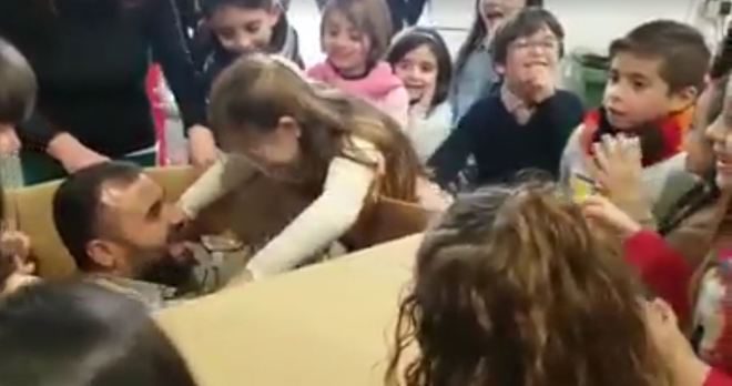 La joven creía que iba a celebrar su cumpleaños sin la presencia de su padre, militar destinado en África, sin embargo, esta caja de regalo gigante le ha deparado una sorpresa que no se esperaba.